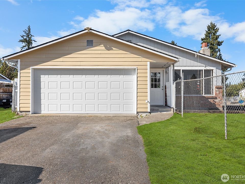 This beautifully charming, 4 bed room, 1.75 bath, home is perfectly positioned on a large, level, fully fenced corner lot with endless possibilities for gardening, landscape, and entertainment. In addition to the attached 2 car garbage you will find ample space for parking outside to include RV and/or boat. Inside you will find a living space warmed by a wonderfully crafted brick wood burning fireplace. Wood flooring flows from the living space into the kitchen and dining. The kitchen is complete with beautiful wood cabinets and white brick accent wall. 4 spacious rooms offer ceiling fans and wall to wall carpet providing warmth and comfort. Primary with tasteful on suite bath. This property provides everything you need to feel at home.