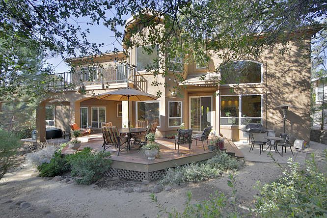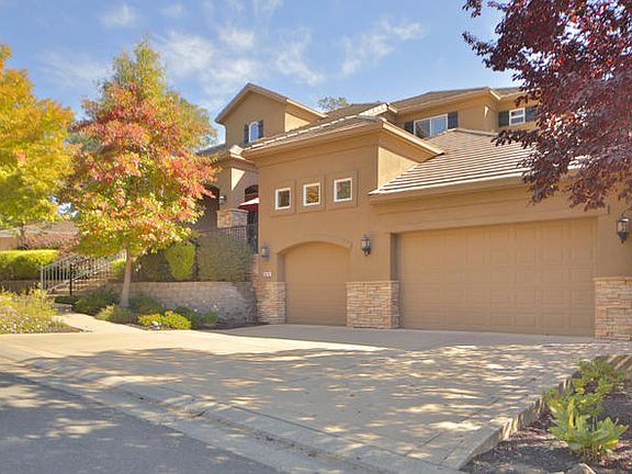 EXCEPTIONAL CUSTOM TUSCAN HOME NESTLED ON PRIVATE WOODED LOT BUILT IN 2002 Impressive architectural design incorporates 20 ft ceilings, tall archways, lighted art niches and clerestory windows open to peaceful backyard with native rock outcroppings, Oak trees, and views of greenbelt. Outstanding 3850 sf home has 3 Bedrooms, 3 Baths, large library/office, plus bonus/rec room with billiard table & exercise area. Unsurpassed craftsmanship and quality throughout including energy efficient 2”x6” exterior construction. Dramatic Great Room has wall of built-in Alder/Birch cabinetry with Cherry stain, media center & stack stone fireplace with pellet stove. Chef’s dream Kitchen has imported granite slab counters, center island with second prep sink and dining bar, gas range with built-in griddle, stainless steel hood plus stainless double convection ovens and microwave,. Elegant Dining Room has Cherry hardwood floors, 20 ft ceilings, wall of windows with plantation shutters, built-in Alder/Birch cabinetry with specialty glass doors. French door opens to climate controlled, insulated wine room with storage for 480 bottles. Downstairs Master Suite has 2 large walk-in closets and slider door to private patio with spa. Beautiful Master Bath with chiseled edge travertine.
