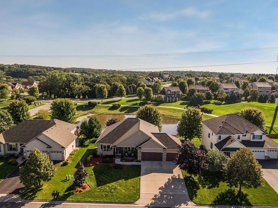Located on an ideal lot across the street from Peter Thompson Park in the desirable Highland Hills neighborhood, this outstanding rambler offers beautiful curb appeal and notable features and upgrades throughout. The open floor plan boasts a spacious kitchen with SS appliances, Silestone counters and tile backsplash, formal and informal dining and great room with gas fireplace and custom mantle surround. Main level also offers access to a private deck overlooking the pond in back, the master suite with a full en suite bath, and second bedroom that's an excellent option for an at-home business or office with its private exterior door. Two additional bedrooms can be found in the lower level that also features in-floor heat, family room with a full kitchen/wet bar, exercise room and bonus room, while the walkout leads to a stamped concrete patio in the fenced-in backyard. Also enjoy updated baths with quartz countertops, 9' ceilings throughout and tons of windows for optimal daylight!