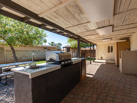 Fantastic 4 bedroom, 3 bathroom plus a den home for sale in Phoenix, Az! Recently updated. Kitchen offers new white cabinets with bar-handle hardware, subway tile backsplash and custom pantry behind a barn door. All 3 bathrooms remodeled. Tile throughout means no carpet mess. Back yard features a shaded vegetable garden with mist watering system, huge covered patio with built-in bbq & refrigerator, plenty of patio lighting and a storage shed as well as a workshop with power with direct access behind the pavered rv gate entrance. New roof in 2022. The 4th bedroom, 3rd bathroom and den could easily be utilized as guest quarters.