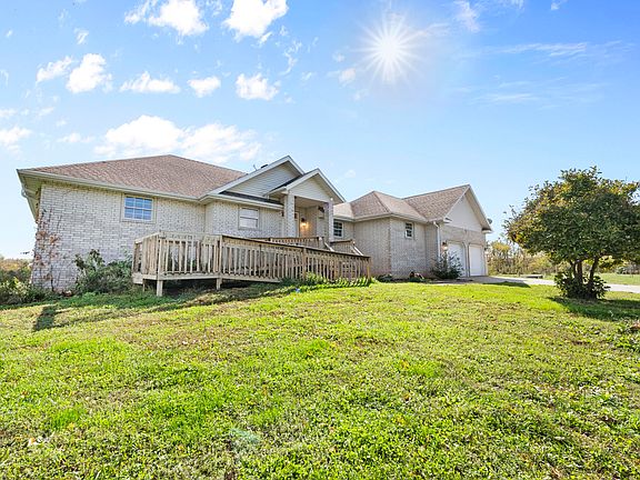 Welcome to this beautifully updated 3 bedroom, 2.5 bath home sitting on 10 peaceful acres. When you walk in, you'll notice right away how bright and open it feels, with a wall of windows surrounding the staircase and hardwood floors that bring warmth to the living space. The main level is fully handicap accessible for ease and comfort. The kitchen is spacious and inviting with an island and a huge walk-in pantry. The master suite features a jetted tub, a handicap accessible shower, and its own private deck overlooking the property. Outside, you'll love the brand new fencing and the beautiful updates throughout. Sitting on a private road with great views, this home offers quiet country living while being just minutes north of I-44.