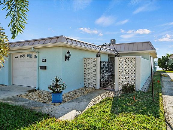 Desirable Gated 55+ Waterfront Boating Community – Boca Ciega Point on the Madeira Beach Intracoastal! You don’t need to be a boater to enjoy this exceptional lifestyle. Welcome to a coveted CORNER Villa (#642 Blvd South), a beautifully fully remodeled, 2-bedroom, 2-bath residence with a den and sweeping south-facing water views. From the moment you enter, you’ll be drawn to the water view, showcased through the bright, open layout and the spacious semi enclosed lanai—an ideal spot for enjoying fresh air, dolphin and manatee sightings, and fishing right outside your villa. The interior has been fully renovated with new flooring throughout, millwork, stainless steel kitchen appliances, cabinetry, remodeled baths, new plumbing, electrical systems, ceiling fans and lighting. The generous primary suite accommodates a king-size+ bed and features an en-suite bathroom and walk-in closet. Unique to this floor plan, the additional den, offers flexibility for an office, hobby room, or guest space. Other Villa features include Hurricane Impact Rated doors and windows, an attached 1-car garage housing a double wash tub, laundry hookups, new water heater, and your very own private courtyard for perhaps grilling or planting herbs/landscape or a place for grandchildren to play! Boca Ciega Point provides a true resort-style experience, offering tennis, a heated pool, pickleball, bocce, ground shuffleboard, a fitness center, card and game rooms. Additional community amenities include, a Boat Club, community grill area, two social rooms, and even a convenient air station for residents’ tires. HOA covers fiber-optic cable and internet, water, sewer, trash, building and flood insurance, exterior maintenance, on-site management and groundskeeping, along with Envera; a virtual gate security system. Association #9 is known for its strong reserves and excellent management. Pet friendly, one pet up to 25 lbs. This prime location sits 2 miles from Madeira Beach’s Archibald Park, where you’ll find a food concession, chair and umbrella rentals, and beautiful sunset views. Restaurants, pubs, Publix, Seminole City Center, Tyrone Mall, marinas, and the VA Hospital are all nearby. Pinellas County’s #1 tourist attraction, John’s Pass Village, provides boat/jet ski rentals, parasailing, dolphin watch tours, fishing tours and more for your visiting guests. Downtown St. Petersburg is nearly 13 miles away offering fantastic night life and the nation’s 3rd longest public waterfront park. The association was impacted by Hurricane Helene. Villa #642 offers the perfect blend of comfort, convenience, and waterfront living—whether you boat or not. Pricing reflects the option for the new owner to install a custom design dock to meet their waterfront needs in PARADISE! Show ready!