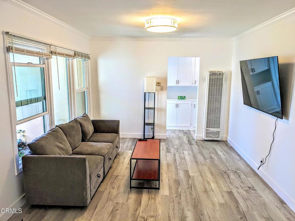 **Charming Home in Port Hueneme** Welcome to this beautiful home featuring a picturesque front yard and a cozy porch, perfect for relaxing and enjoying the neighborhood charm. This delightful 3-bedroom, 1-bath home offers 1,273 sq. ft. of comfortable living space. Step inside to discover beautiful laminated floors that enhance the warmth and appeal of the property. The inviting living room features a sliding glass door that opens to the backyard, creating a seamless connection between indoor and outdoor spaces. The flow into the dining area and kitchen, separated by a stylish, raised floor design that adds character. The modern kitchen boasts sleek white cabinets, dual basin sink with a contemporary faucet, and ample storage. All three bedrooms are well-sized with large windows, filling the spaces with natural light. The shared full bathroom includes a tub-shower combination, perfect for relaxation or daily convenience. The property also features an ample driveway and a two-car attached garage, offering plenty of parking or ADU potential. This home is a true gem in Port Hueneme, blending charm, style, and functionality. Don't miss this incredible opportunity!