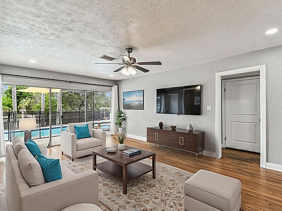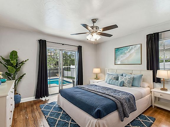Pool homeRenovated kitchenPool deckOverlooking pool and canalOriginal wood floorsCountertop spaceLots of cabinet storage