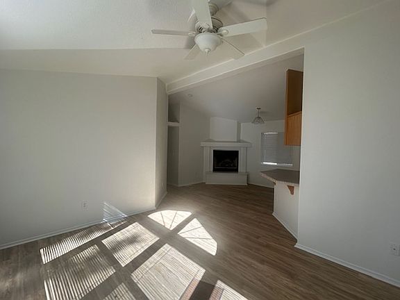 Bright and Clean open concept 3 bedroom 2 bath home with laundry room and garage. Hard floors in living and kitchen, carpet in bedrooms. Kitchen has stove, fridge , microwave and small breakfast nook. Fireplace in main living space. Concrete driveway. NO Pets
