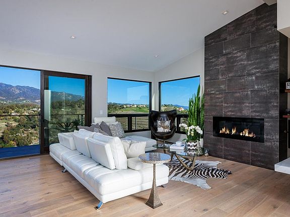 This chic newly built contemporary home is professionally designed to offer walls of expansive glass for enjoying the most captivating views of the ocean, islands, mountains and Santa Barbara coastline. The sophisticated interiors offer sensational finishes and the finest attention to details including French oak floors, 2 fireplaces, gourmet kitchen with custom cabinetry and large island. The