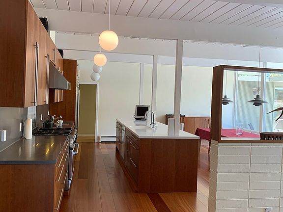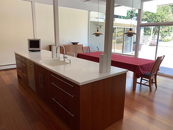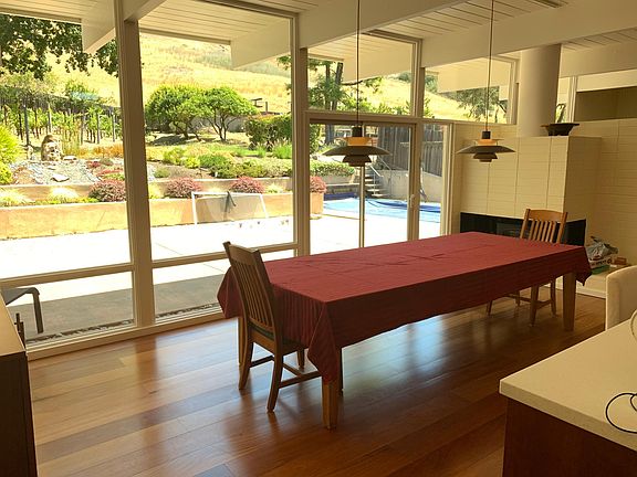 Call to make appointment for showing this Sunday 10:30 to noon - Eichler Home, 2150 SQF with grounds ( on a 3 lot parcel ) all classic detail intact and fully renovated 4 bedrooms 2 full tiled baths / w floor heat in master, Gourmet kitchen Corian counters / SubZero Fridge / commercial range, all high end appliances, Surround-sound ready thru-out house and at pool, Automatic Pool-cover cover, Solar Pool Heat with extra panels for extended season. Full Retractable awning covering Patio. Backing up to open space ( Springs Hill ), Hobby Vineyard, water feature, Fruit trees, table grapes, Raised vegetable gardens and mature trees. House is in Dixie School district / Rec center with pool 2 block away - Commute to downtown by GGT #38 stop at Rec center 2 blocks away 220 volt hybrid plugin in driveway Renter pays all utilities, and maintenance of yard and pool (to extend needed), parking for 3 cars in driveway, 220 volt hybrid plug in & 1 car / boat parking behind gate.