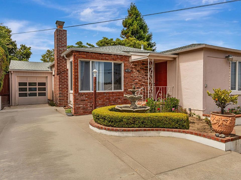 Delightful 3-bedroom, 2 bath (1 bath permit unknown) mid-century home. Located in desirable Millbrae. Front landscape combines a classic-style fence, formal hedges, with an informal garden enhanced by a bubbling fountain. Enter the home to see a spacious living room with an elegant fireplace which flows to the dining room, ideal for cozy meals. The kitchen, tastefully designed and remodeled to feature lovely cabinets, granite counters, stainless steel appliances, tile flooring. Natural light pours in through twin garden windows and skylights with a view of the verdant rear yard. Living, dining and bedrooms have hardwood floors. The private backyard haven is fenced with a detached structure - a delightful playhouse with gleaming wood interior and its own entrance. Other possibilities - office, art studio, etc. There is an expansive backyard with a large deck for quiet enjoyment or fun with others, yet privacy with elegant cypress trees, plus a peek of a lovely view. Minutes from top-rated schools, neighborhood parks, commuter routes (BART and Caltrain). Shopping choices, boutiques, cafes and dining options are close. This charming Millbrae home blends tranquility with convenience, and feels both nostalgic and fresh.