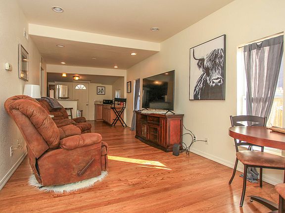 This beautiful, quaint 2 bedroom, 2 bath sits on a 1/4 acre lot with its own driveway and fenced in backyard. The backyard hosts a family of Pear trees, a large deck, outdoor seating, evening festoon lighting and boasts a beautiful view of Pikes Peak, all year round.