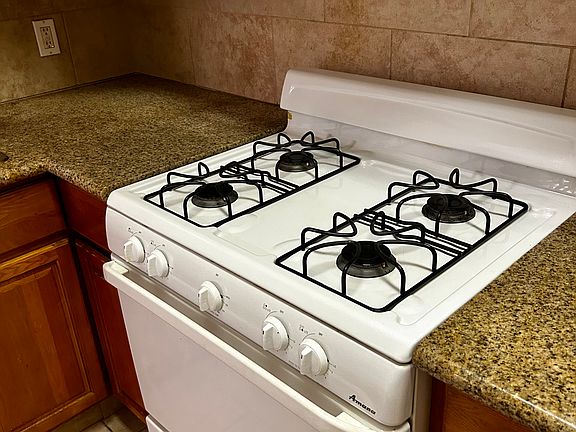 Large upstairs studio, with a separate kitchen space. Refrigerator and gas stove. Animals welcomed with pet deposit. Shared front and back yard grass area.