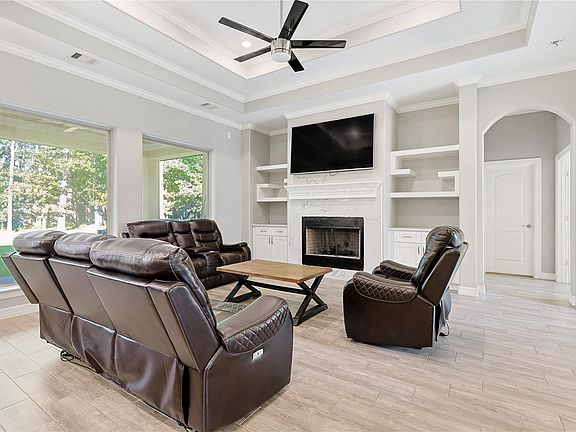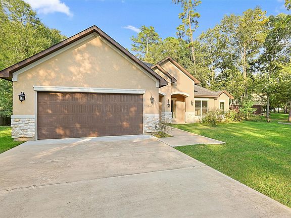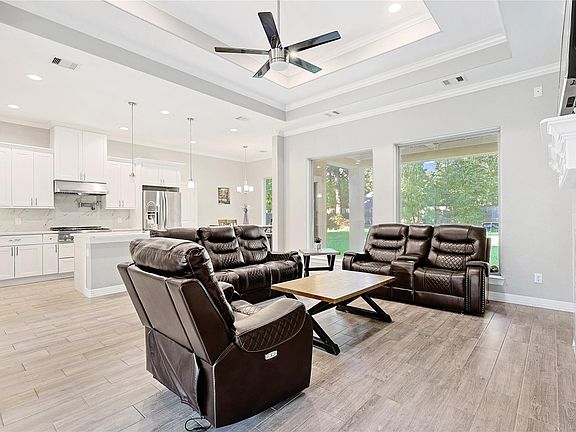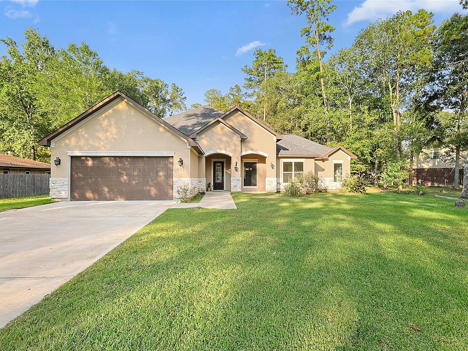Located in Roman Forest and just shy of 1/2 acre.Custom designed 4bed/2bth/2 car single-story home with modern comfort, style, and functionality on a spacious tree-lined lot. The inviting exterior features stucco and stone accents, an oversized two-car garage, and a welcoming covered entry. Inside, the open-concept layout boasts soaring tray ceilings, abundant natural light, and a living room centered around a cozy fireplace with custom built-ins. The gourmet kitchen is a chef’s dream with quartz countertops, a large island, stainless steel appliances, ZLINE gas range with pot filler, double ovens, and ample cabinetry. A bright dining nook and seamless flow to the living space make entertaining effortless. The primary suite is a peaceful retreat with spa-inspired finishes, while secondary bedrooms are generously sized. Outdoors, enjoy a covered patio and expansive backyard with endless possibilities for a pool, garden and play area—all just minutes from shopping, dining, and more.