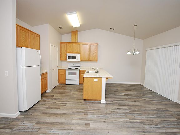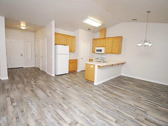 Beautifully updated, with new paint, engineered plank flooring & carpet in the bedrooms. Single level 2bd/2ba fourplex unit with 1 car garage, approx. 1000sf, built in 2006. Spacious, open plan with vaulted ceilings, has kitchen with self cleaning range, dishwasher, refrigerator and new microwave. Central Heat & air. W/D hookups in garage. Dryer can be propane or electric. Owner pays water, sewer & garbage. Small pet negotiable. Credit Score of 650 or higher required. Credit Score of 650 or higher required. One year lease; Owner pays for water, sewer, and garbage; Tenant responsible for gas and electricity; One pet negotiable with additional deposit; Washer Dryer hookups in Garage;