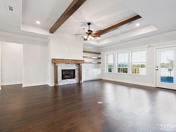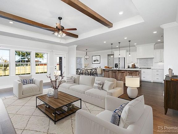 Welcome to this beautiful new home! You will love all the extras this home has to offer such as: wood floors throughout the kitchen, living room, halls, dining area, master bedroom and guest bedroom, custom kitchen cabinets with spice rack, pull out trash cabinet, pantry, custom hood vent, 5 burner gas cooktop, soft close cabinet doors , undercabinet lighting, granite countertops, stained island, living room with built-in book shelves, 2 inch wood blinds, cedar beams, guest bedroom has full bath, 2nd bath has double vanity. Slip away to the master suite where you will find one accent shiplap wall, trey ceilings and a master bath with a claw foot bath tub for relaxing ,2 vanities, a custom tiled shower with 2 shower heads, large master closet with a built-in dresser,. You will love the custom laundry room with 2 cabinets a sink and a hall locker. This home has 4 Bedrooms, 3 full bath, 2 car garage, oversized lot with a covered patio, fully sodded & landscaped front and back yard, wood privacy fence, gutters.