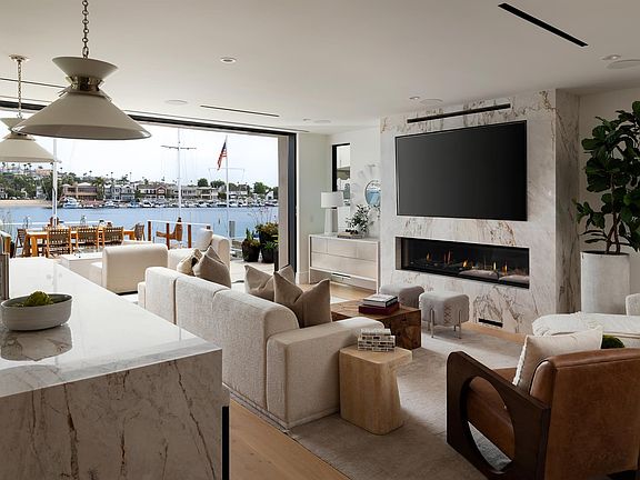 This newly completed bayfront masterpiece was taken down to the studs and meticulously reimagined, blending timeless modernism with architectural pedigree on Lido Isles most coveted stretch of waterfront. Honoring the vision of original architect Donald Knorr, the home showcases clean lines, abundant natural light, and a serene simplicity that defines elevated coastal living. At its heart is a one-of-a-kind retractable roof, the only one on Lido Isle, seamlessly merging indoors with out and creating an open-air experience unlike any other. Spanning nearly 3,000 square feet, the meticulously designed interior offers 4 bedrooms and 4 bathrooms, each finished with designer touches curated by the esteemed Barclay Butera. Highlights include a full Control4 home automation and security system, chef-grade Wolf appliances with dual dishwashers and a 48 range, a beverage center, built-in BBQ, and an expansive waterfront deck that extends the living space dramatically outward. With 32 feet of prime bay frontage, the private dock has been expertly reconfigured to accommodate a 65-foot yacht and a side tie for a Duffy, an increasingly rare offering. Just a short stroll from the upscale charm of Lido Marina Village and its world-class dining, shopping, and beaches, this residence isnt just a homeits a redefinition of bayfront luxury living.