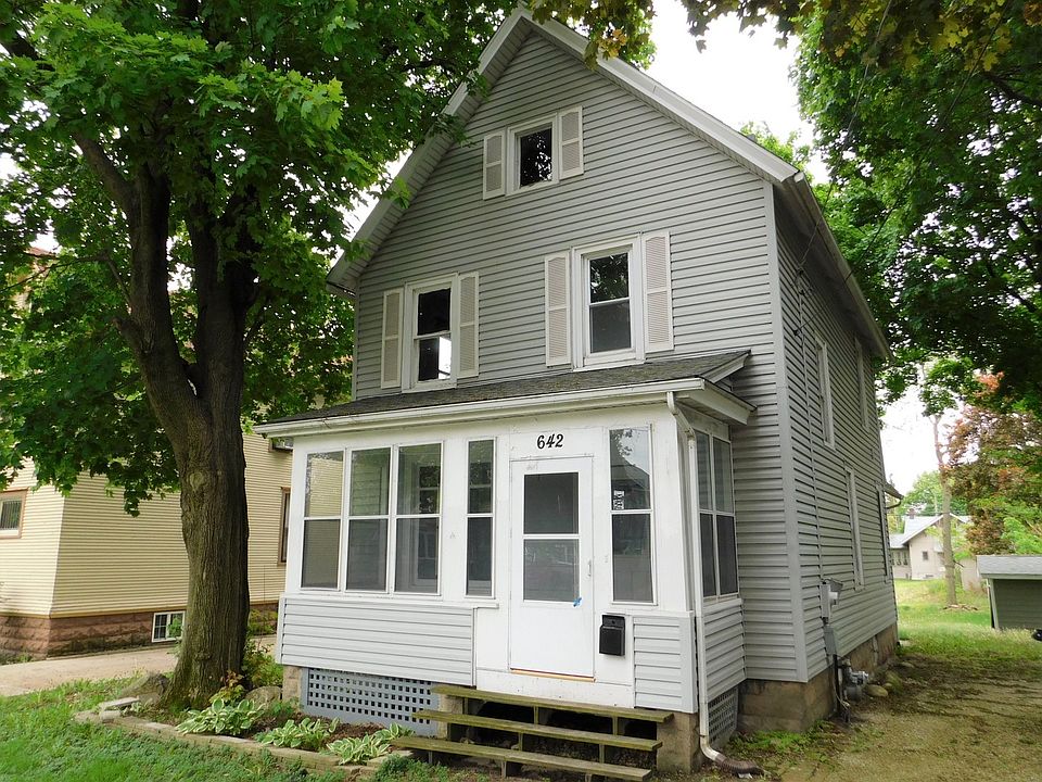 Great opportunity just a few blocks from booming downtown Aurora! This two-story home features hardwood floors and is situated on a huge lot. Some of the other fantastic features include... Separate dining room ~ Large eat-in kitchen ~ Two full bathrooms ~ Enclosed porch ~ Some newer vinyl windows ~ Storage shed ~ Plenty of parking with more than enough space for a garage ~ Bring your ideas and make this the perfect home!