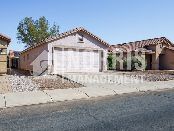 Welcome to your home located in SK Ranch with low maintenance. The home has tile floors throughout with wood plank in the bedrooms. It features three bedrooms and two bathrooms with a two car garage and lots of storage space. Entering the kitchen you will be equipped with all appliances including refrigerator, dishwasher, electric stove and microwave. The rear yard is covered with rock and pavers and also has a fire place for relaxing nights.