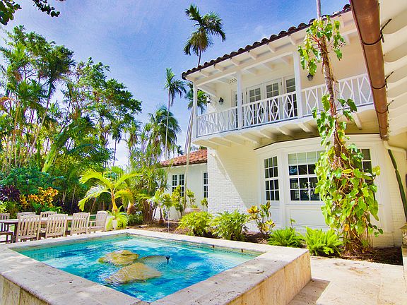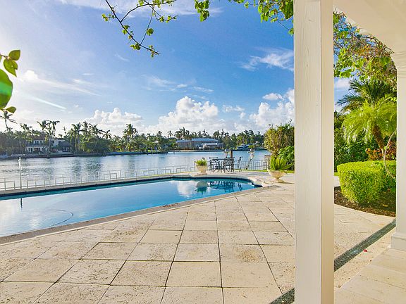 Rare 7 bd, 6.5 bath masterpiece designed by Palm Beach society Architect Maurice Fatio sits on a 30,000 sq. ft. lot. Boaters rejoice over protected deep waterfront of 135ft w dock, no fixed bridges & double jet ski lift. Located on exclusive guard-gated Allison Isl., Fatios renowned talents are highlighted in this timeless estate. Fatios other Florida icons include Indian Creek Golf & Country Club & former Vanderbilt mansion on Fisher Is. This one of a kind Villa, surrounded by mature banyan trees, features open gourmet gas kitchen, Waterworks baths, Jack Nicklaus-designed putting green, guest quarters, staff quarters w/kitchen & private courtyard w/water feature, billiards rm, Florida rm. Covered loggias & keystone terraces w/amazing Western sunset views, opening to 60ft pool w hot tub.