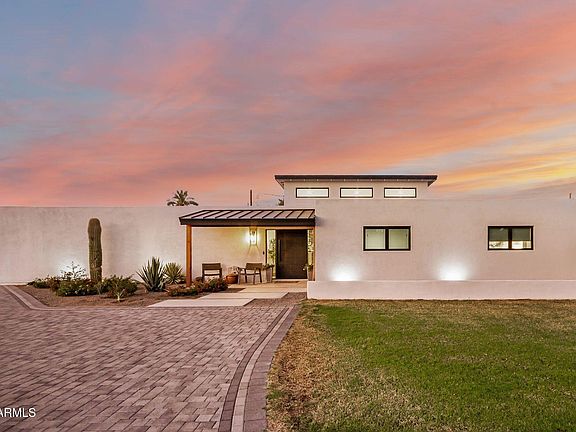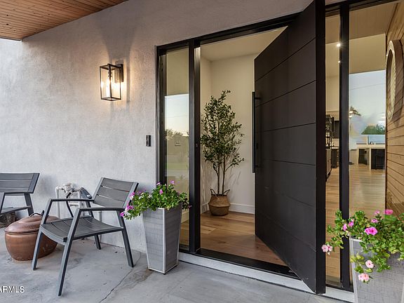 Welcome to Cholla compound with a modern home that seamlessly blends luxury and leisure, featuring an open-concept design with large windows that flood the interior with natural light. The centerpiece is a sleek living area with vaulted ceilings that flows into a gourmet kitchen, equipped with high-end appliances and stylish finishes. Natural wide plank flooring throughout.