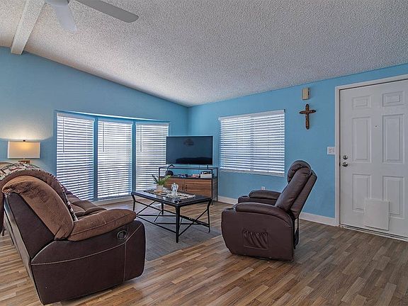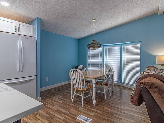 Fully remodeled 2 Bedroom 2 Bath manufactured home For Sale in a 55+ Gated Land Lease Community. The home is located on a large pie shaped home-site with mature trees. It has on-site covered parking with a large matching shed/workshop at the end of the driveway. There is also a large covered front deck. This floor-plan features a spacious front "Great Room" that includes the living room, dining room, kitchen and family room. 2 large front bay windows in the living room and dining room deliver plenty of natural light during the day. The home has tape & textured drywall and vaulted ceilings throughout. Laminate flooring has been installed throughout most of the home with tile flooring in the bathrooms and carpet in the bedrooms. The entire interior of the home has been recently repainted. The kitchen has been fully remodeled with NEW cabinets, countertops, and upgraded appliances. There are plenty of cabinets and counter-space in this upgraded kitchen. The laundry room is just past the kitchen and right inside the back door of the home. There are additional cabinets above the washer and dryer and also a large pantry. There is enough space in the laundry room for a freezer or an additional refrigerator. The existing clothes washer and dryer are also included. The guest bedroom is directly across the hallway from the laundry room. It is queen-size and includes a reach-in closet and lighted ceiling fan. The guest bathroom has been remodeled and includes new flooring a new vanity and upgraded tub shower combo with tile surround. There is a large linen closet in the hallway just outside the guest bathroom. The master bedroom is at the rear of the home. It is king-size and includes a walk-in closet and a fully remodeled en-suite bathroom. The bathroom has an upgraded double-sink vanity upgraded toilet, upgraded lighting and plumbing fixtures and a custom walk-in shower. There is another large linen closet right behind the bathroom door. This home is in very nice condition and the upgrades make the home feel like new.