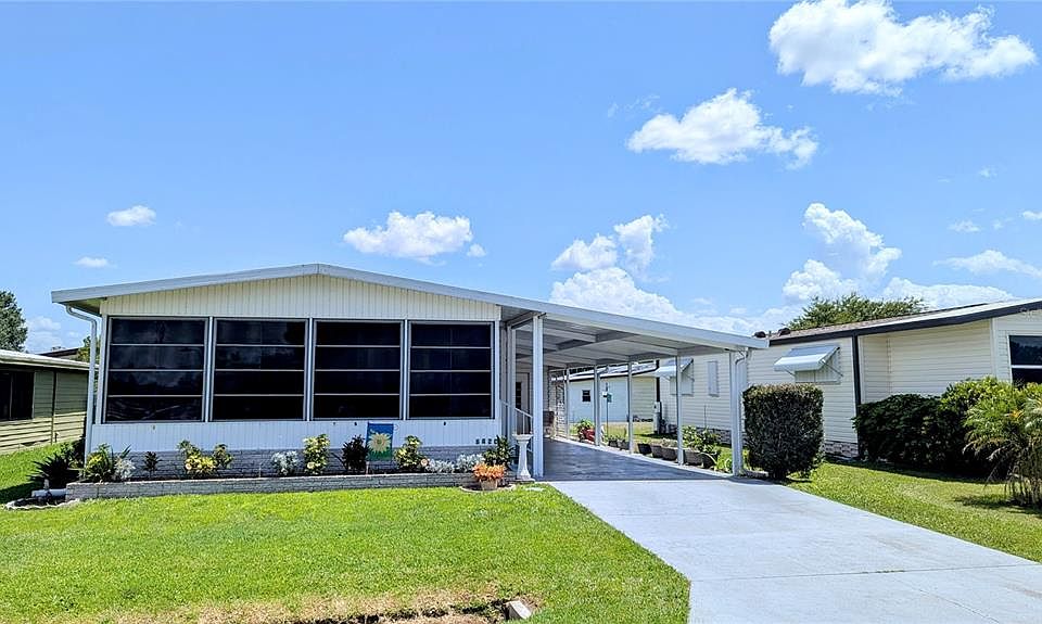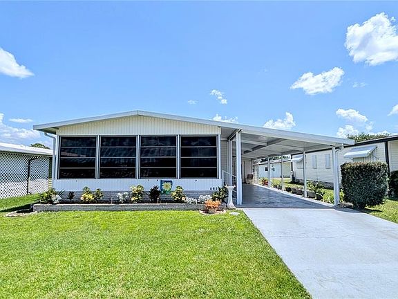 Huge Price Drop! Hurry! Welcome to Brookhaven! You own your own land! No Lot rent! Tucked away in one of the most serene 55+ communities around, this well maintained home offers the perfect balance of tranquility and convenience. Step inside to discover 2 spacious bedrooms, 2 full bathrooms, 3 car carport, and a light-filled Florida room that feels like a daily vacation. Whether you're sipping coffee in the morning sun or hosting friends, this space is your sanctuary. This home has been meticulously updated and is move-in ready with big-ticket upgrades already done: Brand new energy-efficient storm windows and sliding glass door; new washer & dryer; new refrigerator, new showers and new toilets, new siding (2023); re-plumbed/re-piped with PVC, new vapor barrier (2020), roof and A/C just 3 years old; new anchors and hurricane straps for peace of mind! The Florida room has been fully upgraded with new screens and windows. Outside your front door, Brookhaven invites you to enjoy life at your own pace — whether it’s morning laps in the pool (just outside your front door), fun at the shuffleboard courts, or meeting neighbors at the clubhouse for community events. Here, you're not just buying a home — you're joining a vibrant, welcoming lifestyle. Brookhaven is a hidden gem — quiet, friendly, and close to everything you need: shopping, dining, and all the essentials just minutes away. Very Low HOA! Furniture is included!