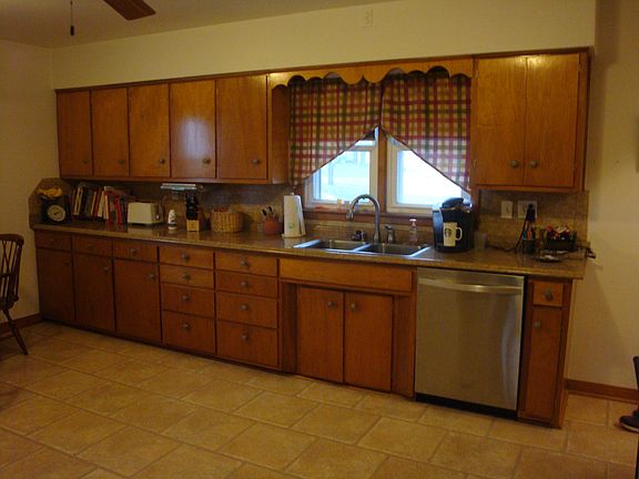 Very solid 2 bedroom and 1-1/2 bathroom home. Home features a large/open kitchen and very generous living area. Home has replacement windows and updated countertops in both the kitchen and the MF bathroom. Breezeway connects house and over-sized 2-stall garage. Lot is nearly 1/2 acre. House on city water with well for outside water use. House is wired for a generator.