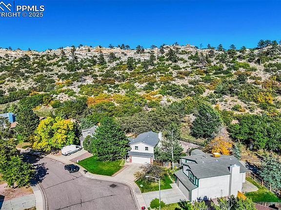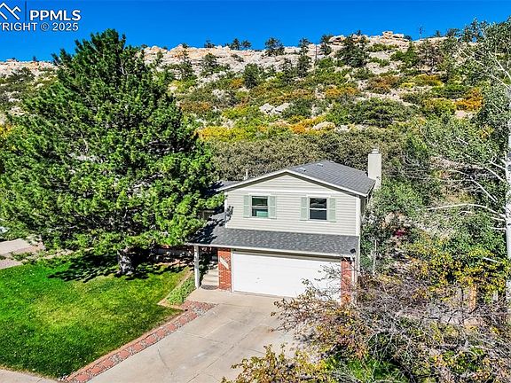 Nestled against the beauty of Ute Valley Park, this 4-bedroom, 3-bath, fully finished 4-level home offers a rare blend of comfort and nature. Out back, trees, rock formations, and visiting wildlife provide a breathtaking backdrop to everyday living. Step inside to discover thoughtful updates throughout: a 40-year dimensional shingle roof, energy-efficient vinyl windows, sliding and atrium glass doors, and new carpet on three levels. The heart of the home is the kitchen, designed with vaulted ceilings and custom tile flooring, flowing seamlessly into the family room with its warm brick wood-burning fireplace. From here, step onto a two-tier deck overlooking a private fenced yard professionally xeriscaped with terraced plantings, a paver walkway, and a spacious 26x17 PaveStone patio, perfect for outdoor gatherings. Upstairs hosts the laundry and a primary suite with Pikes Peak views. An oversized two-car garage provides plenty of room for vehicles, storage, or hobbies. All this, just minutes from Garden of the Gods, downtown, shopping, and I-25. Move-in ready and waiting! Come see why this home feels like the perfect fit. Schedule your showing today!