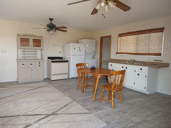 Please read all information before texting us about the house and tell us about yourself. This is a single family house located approximately 1/2 mile from Joshua Tree Retreat Center. There are two houses on the property, the front one is already occupied. This house has a mini split system for AC and heat, kitchen stove, refrigerator, a stacking washer and dryer, microwave, a table and chairs, a dresser, and small desk. New tile flooring. THERE ARE STEPS leading up to front door and TWO STEPS leading up to bedroom.
