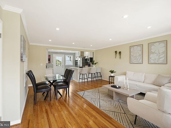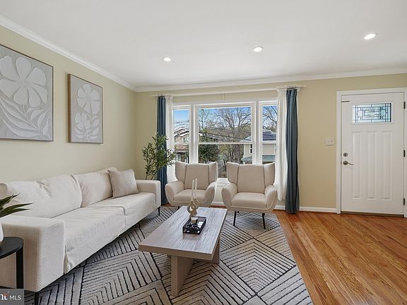 Welcome to this beautifully renovated home, blending timeless charm with modern updates. The main level features an open floor plan filled with natural light, accented by crown molding and replacement windows. The inviting living and dining areas boast recessed lighting, custom built-ins, and gorgeous wood floors, seamlessly flowing into the sleek, renovated kitchen. The gourmet kitchen showcases exquisite quartz countertops, a grey subway-tile backsplash, stainless steel appliances, a glass cooktop with a range hood featuring a glass canopy, oversized tile flooring, and convenient backyard access. Three spacious bedrooms, including a primary suite with a private en-suite bathroom featuring a stylish barn door, and two fully renovated bathrooms complete the main level. One of the bathrooms includes a stylish vessel sink for added elegance. The spacious finished lower level offers a generous family room with recessed lighting and durable vinyl flooring, a fourth bedroom, an office, an updated full bathroom, and a half bathroom. This level also includes a laundry/storage room and a rear entrance for added convenience. The outdoor space is a true highlight of this property, featuring a deep, fenced backyard with ample room to relax and entertain. A charming circular patio and a cozy firepit area set the stage for memorable gatherings, while a whimsical bench swing nestled in the back corner adds a touch of enchantment. The terraced yard is beautifully accented with elegant stone hardscaping, and the private driveway and built-in flower boxes further enhance the home’s curb appeal. Nestled in the vibrant and eclectic Pine Crest of Takoma Park, this home is located just under a mile from the Red Line Metro and within walking distance of the Farmer’s Market, Takoma Beverage Company, Busboys and Poets, Cielo Rojo, and Takoma Urban Park. With neighborhood events like summer block parties, Halloween celebrations, and the beloved Turkey Fry, this home offers easy and convenient living in a warm, tight-knit community. It’s the perfect blend of modern comfort and classic charm in an unbeatable location.