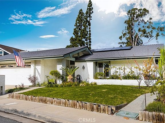 Beautiful view home on quiet Anaheim Hills street in the Broadmoor Northridge neighborhood - and just steps from the community pool/spa so you can easily enjoy the occasional dip without the ongoing pool maintenance! The spacious and light-filled single story home is move-in ready! Home was one of the former models for the tract and has a large view lot, with a side yard with low-maintenance synthetic turf! Enter via a large enclosed Eichler-like atrium that's configured for additional storage and private outdoor space, while providing a covered path to the 2-car garage. Stunning living room has vaulted ceilings, a gas-burning fireplace, and a fantastic view of the back yard, trees, and surrounding foothills -- as do the kitchen, formal dining area, and in-kitchen dining area, too! Kitchen opens to spacious family room with white real-wood-paneled walls with surround sound built into the ceiling. Newer roof (June 2022) with paid-for-solar panels ($10/month electric bill, anyone?), dual pane windows/sliding doors, and a newer water heater, too! This home has the perfect floor plan for entertaining with great circulation flow between the Kitchen/Family Room, both outdoor areas, and the Living and Dining rooms - plenty of places to gather and mingle! Master bedroom has dual entry doors, vaulted ceilings, direct access to the atrium; The adjacent master bath features dual copper sinks, and a private ceiling-mounted rain-shower! Ceiling fans in most rooms as well! In addition to the updated electrical panels for the solar installation, there is also a 10-circuit transfer switch installed in the event of an extended power outage at night. If you've been looking for a forever view home, with plenty of amenities nearby, this is your opportunity! Call your Realtor today to schedule a showing!