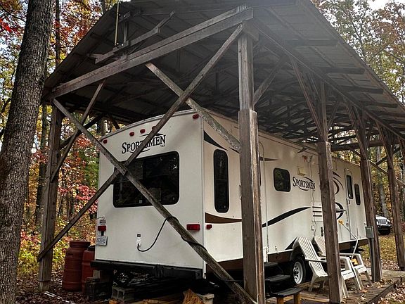 Lake County Retreat - 5+ Acres with Camper, Power, and Direct Public Land Access! Escape to the heart of Lake County and discover this rare recreational gem: just over 5 wooded acres tucked off a quiet, paved, county-maintained road with direct access to hundreds of acres of public land bordering its western edge. Whether you're seeking a weekend getaway, a basecamp for adventure, or a peaceful off-grid retreat, this property delivers. Included in the sale is a spacious and well-maintained 28' camper with a slide-out, offering all the modern comforts you need—protected year-round by a sturdy metal roof-over for added durability and peace of mind. Step outside and you'll find an 8x12 storage shed w/power for gear and supplies, plus a charming, clean outhouse that adds rustic character and convenience. Power is already in place at the camper, plus an additional hookup to make it easy to welcome friends and family—just pull in, plug in, and enjoy. The property's layout offers privacy and flexibility, with room to expand or simply relax under the canopy of trees.