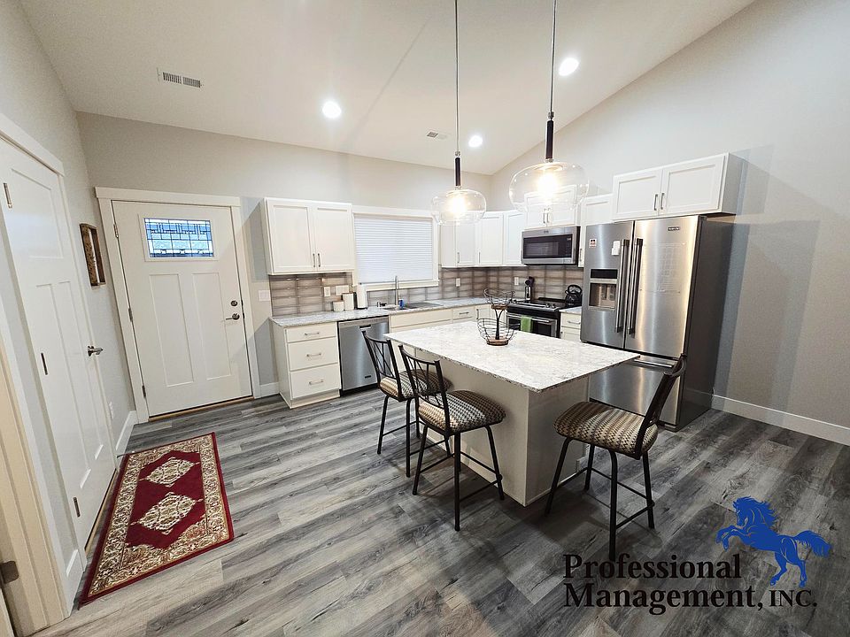 Modern single level townhouse located in northwest Billings. Built in 2020, this fully furnished 2 bedroom, 2 bathroom includes many amenities. The kitchen features newer stainless steel appliances, dishwasher, electric stove and over the range microwave. The open concept living room includes a gas fireplace, smart TV, pool table and access to the back patio. The master bedroom has a TV, walk-in closet and its own private bath. The rest of this cozy home includes: central air, gas heat, high Efficiency washer and dryer and attached double car garage with remote. All utilities paid, internet included. Small dogs OK, pets add $50 per pet per month. Length of lease is negotiable. Sorry will not qualify for Section 8. WA2557.