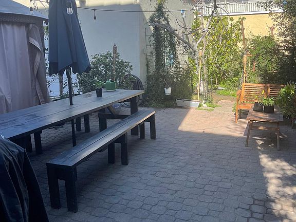 Spanish style duplex unit, two story, with 7 rooms, including 3 bedrooms ,1.5 bathrooms, plenty of windows, and beautiful backyard. Hardwood floors throughout. Downstairs has a big living room, separate dining room, breakfast room, kitchen with new refrigerator, and laundry room with washer and dryer. Stairs has a skylight. Upstairs has three bedrooms and a full bathroom. Single parking in front of house. In a convenient location, by the Beverly Center! many museums ,walking distance to restaurants, Whole Foods, Trader Joe's and shopping .Close to Cedars Sinai hospital. Owner pays water. Renters responsible for gas and electric. Last month's rent due at signing. Up to two small pets permitted.