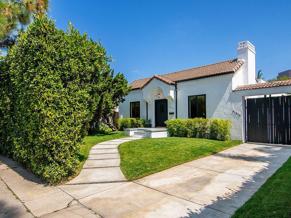 Down-to-the-studs renovation + addition to Carthay Square Single Story Spanish with 3 beds + 2.5 baths inside & full ADU outside. Front yard is hedged from the street, has fresh green grassy lawn, and driveway for off street parking. Living room with fireplace and picture window opens to the dining room, perfect for entertaining! Brand new quarter sawn white oak custom kitchen with abundant storage, oversized center island, Aella marble counters, mosaic marble tile backsplash. Brand new appliances include Kitchenaid oversized fridge/freezer, kitchenaid double wall oven, kitchenaid built-in microwave, wine fridge, dishwasher. Huge family room off the kitchen opens with sliding doors to the yard and ADU. Spacious laundry room with side-by-side washer dryer, abundant countertop and storage space. Two bedrooms share a designer Jack and Jill bathroom with double sinks and glass enclosed shower. Coat closet + powder room for guests. Primary en-suite bedroom opens with double glass sliding doors to the fenced grassy yard. Luxurious spa-like primary bathroom has custom white oak double sink vanity with drawers + cabinets, large shower with dual shower heads, standalone tub. Large walk in closet. ADU has mini split cooling system, tankless water heater & huge double glass doors that open to the grassy yard, spacious bedroom + bath with shower + kitchenette + living/dining with amazing views. All living spaces are drenched in sunshine! Central HVAC (5 ton Goodman package unit mounted on roof), tankless water heaters, engineered wood floors, new Milgard Triassic V3000 series windows, new 150 amp electric panel + all new high efficiency LED lighting, all new plumbing + new sewer line from the house & ADU to the sidewalk, new roof on both the house and ADU, new sprinklers in front & back yards, both house + ADU have automatic fire sprinklers, new drywall + stucco. Entirely awesome taste and style! Long driveway - in front and behind gate - fits multiple cars parked off street. Central location minutes to Beverly Hills, Downtown, The Grove, Beverly Center!