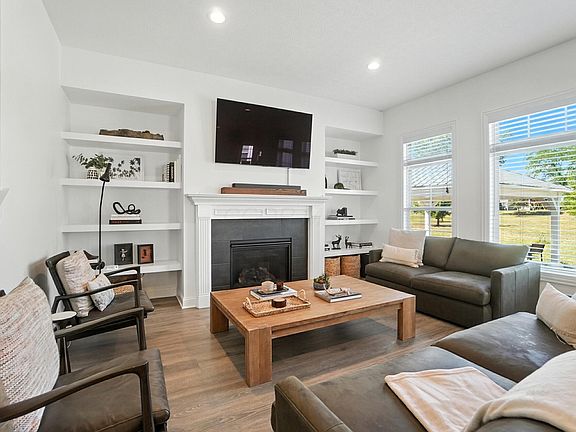 At the heart of the home lies a chef's kitchen, outfitted with premium finishes and expansive workspaces, flowing effortlessly into the impressive great room with a striking fireplace and a sun-drenched morning room. Formal entertaining is elevated in the elegant dining room, while the private patio with hot tub provides a serene retreat with sweeping views of lush green space.