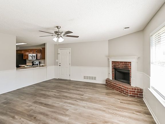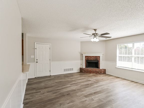Come see all the features and amenities this Horn Lake rental home has to offer. Along with smart home technology and a two-car garage, this 1,744-square-foot property boasts three bedrooms, two and a half bathrooms, and a laundry room. A brick fireplace adds charm to the living room, which has white wainscotting and a big window offering a backyard view. The eat-in kitchen comes with a full set of stainless steel appliances, an above-the-range microwave, and a double-basin sink. Vinyl plank flooring enhances the main bedroom suite, and an overhead fan provides comfort. The adjoining private bathroom boasts both a tub and a shower. Apply for your chance to take an in-person tour today!