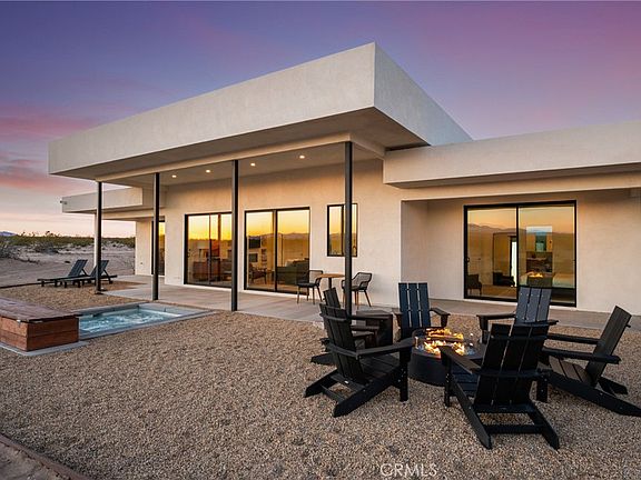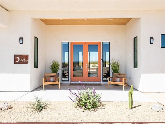 Looking for the perfect Desert Escape? It’s Orion’s Whisper --- A 5-star turn-key Airbnb retreat that’s as beautiful as it is profitable. This stunning, modern desert masterpiece spans approximately 1,326 sq ft., with an additional 375 square feet of detached ADU space, all set on 2.5 acres of serene privacy surrounded by sweeping desert views. Perfectly blending luxury living with investment potential, Orion’s Whisper is already a successful operating short-term rental with a Superhost track record and a complete STR package in place --- ready for seamless ownership and immediate income! Please note that this property features two spacious primary suites, each with a spa-style bathroom that includes glass-wall showers, modern tiles, brand-new vanities, and modern fixtures. Concrete floors are featured throughout, along with soaring ceilings and a linear zero-clearance fireplace framed by built-in contemporary shelving. The kitchen features new appliances, counters, cupboards, fixtures, and kitchenware, and comes stocked with all the desired kitchen gadgets. The wholly owned solar panels, accompanied by a brand-new solar panel gateway and mini-split A/C systems throughout the property, enhance energy efficiency in every living space. Designed for the indoor-outdoor lifestyle that defines desert living, this home brings the outside in through large, picturesque windows and clean architectural lines. The Detached ADU/guest house features a complete and stocked kitchen, en-suite bathroom, a mini-split AC/heat system, and custom double-glass entry doors. Leading you outdoors, the cocktail Pool that doubles as a hot tub is perfect for stargazing nights or sunny desert days. In addition to the guaranteed views of expansive desert scape, the wrap-around concrete patio tastefully displays Mt. San Gorgonio and Mt. Nebo! Whether you’re looking for a profitable investment, a private weekend escape, or both, Orion’s Whisper delivers on every front. Located steps from 30 acres of open government land — ideal for hiking and exploring outside of the designated Joshua Tree National Park. This property embodies tranquility, creativity, and connection to nature. Turnkey. Stylish. Profitable. It’s worth seeing for yourself. Experience the serenity, the design, and the income potential that make Orion’s Whisper one of the desert’s most sought-after retreats.