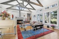 Mature treesPlaster coated wallboardWonderful private patioVaulted ceilingsDramatic beamsBalanced contrasting materialsIndustrial aesthetics