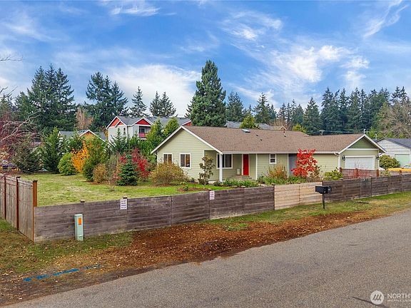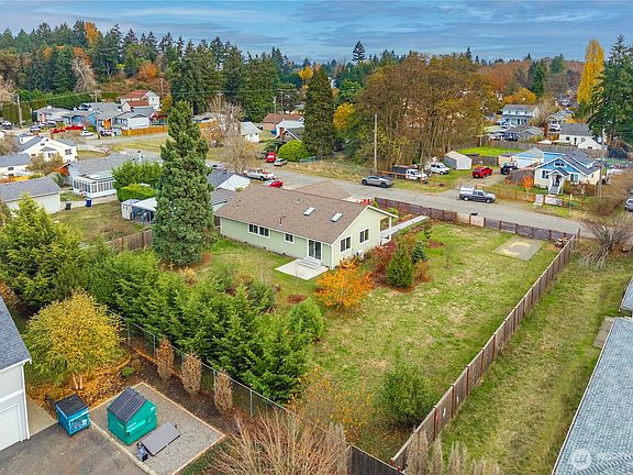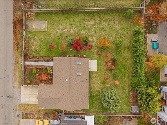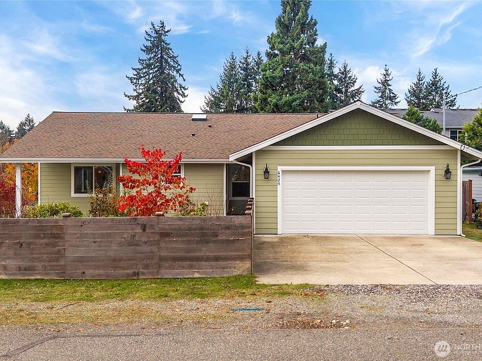 Spotless 2018 rambler set on a gorgeous, oversized lot in Tacoma. Newer construction home offers a light-filled great room concept with vaulted ceilings and skylights. The stunning kitchen features white shaker cabinets, quartz countertops, a crisp white tile backsplash, large center island, and stainless steel appliances. Spacious primary suite includes a walk-in closet and private bath. Beautiful chocolate wide-plank floors throughout, plus an efficient mini-split system with A/C for year-round comfort. Attached two-car garage and a fully-fenced, level, and dry shy-17,000 sq ft lot - beautifully landscaped with mature shrubs and fruit trees. Massive side yard with a 10' gate for RV parking — AND the property is subdividable. Turnkey!