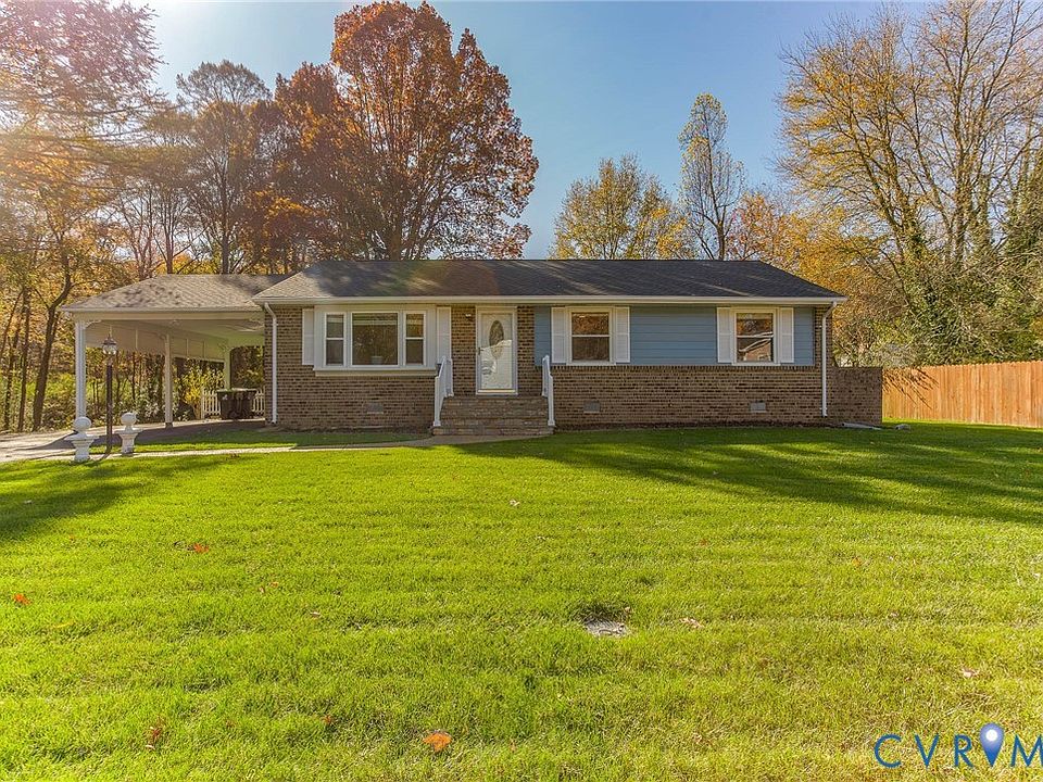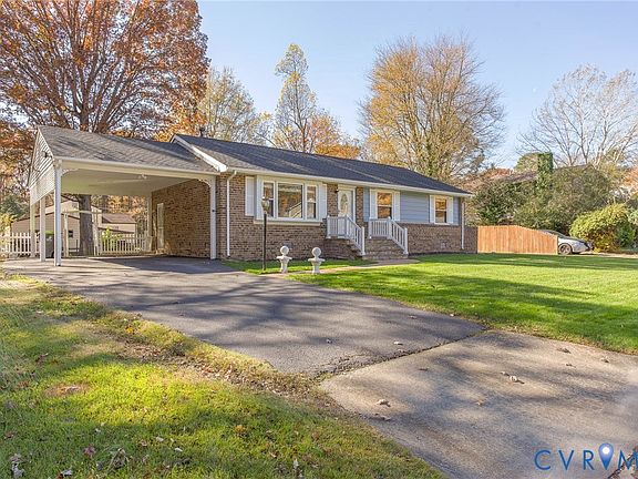 WELL KEPT RANCH!!! This home has a NEW ROOF, NEW BATHROOM VANITIES, NEW Fans in all the bedrooms. Welcome front entrance with white handrails and stone; walk-in to the bright living room w/picture window, fireplace, coat closet & recess lights; enter the Eat-in Kitchen with granite countertops, single bowl stainless steel sink, ceramic tile; closet, recessed lights, island, backsplash, Dining area, & 2 pocket doors. Primary bedroom comes w/half bathroom, walk to hallway and you'll find 2 more bedrooms w/large closets, hardwood floors, fans, & main bathroom. Walk down to your laundry room and it has a side door for your Carport. From Dining area you can walk-out to the back porch which also has a deck and backyard, perfect for family and friend gatherings! Spacious yard with paved driveway. Close to shopping, restaurants. parks and Chippenham Parkway.