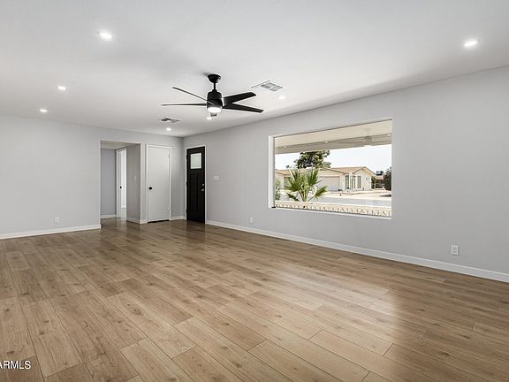 Discover this beautifully remodeled 3-bedroom home located adjacent to Ensenada Park. Step inside to find stylish flooring, modern recessed lighting, and a neutral color palette that extends throughout a spacious living room. The kitchen is equipped with stainless steel appliances, white soft close cabinets, skylights, quartz counters, a pantry, and a breakfast bar, perfect for culinary enthusiasts. The large main suite features bi-fold door closets and a barn door that opens to a chic bathroom. Brand new AC with warranty, new duct work and new water heater. Relax on the expansive covered patio with your favorite drink. The 55+ community of Dreamland Villa has no HOA but offers access to the pool, spa, fitness center for an optional fee. This charming home is a gem that won't disappoint