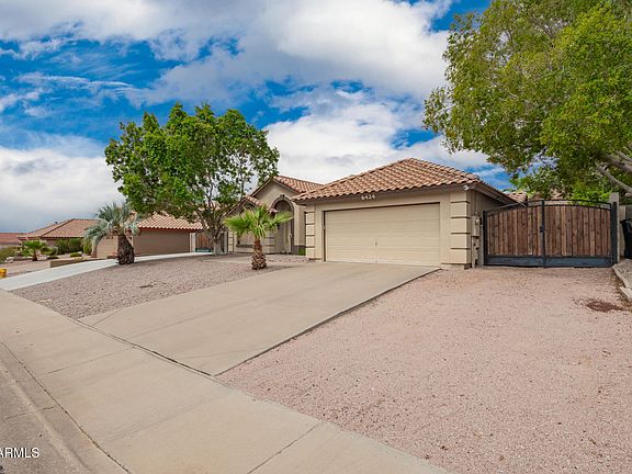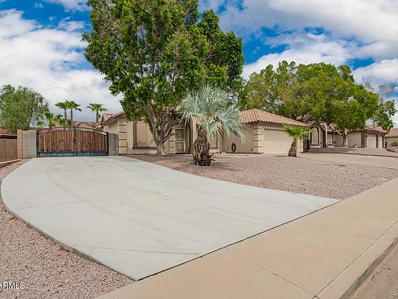 Fantastic 4-bed, 2-bath home with POOL in a NO HOA desirable Mesa location! Enjoy the convenience of a 2-car garage w/cabinets and 2 RV gates - one on each side of the house. The inviting interior features vaulted ceilings, tons of natural light, designer paint, and tile & wood-look floors t/out. Excellent floor plan with a formal dining room & a welcoming great room. The kitchen boasts SS appliances, ample cabinetry, a pantry, track lighting, a 2-tier island, and a breakfast nook w/bay window. The double-door main bedroom has an ensuite with dual vanities, separate tub/shower, & a walk-in closet. Laundry room with a sink & cabinetry. Designed for relaxation & entertainment, the spacious backyard is sure to impress! A covered patio, lush lawn, & a sparkling pool complete the picture.