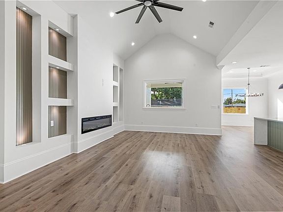 Brand new construction in Metairie! This 4-bedroom, 3-bath home features soaring cathedral ceilings, an open floor plan, and vinyl flooring throughout. The gourmet kitchen boasts an oversized quartz island and butler's pantry with sink and storage. The primary suite offers an oversized shower, and spacious walk-in closet. Custom millwork and a TV feature wall add designer touches, while a covered patio with outdoor kitchen overlooks the generous backyard. With rear yard access and parking for 4+ vehicles, bring all your toys!