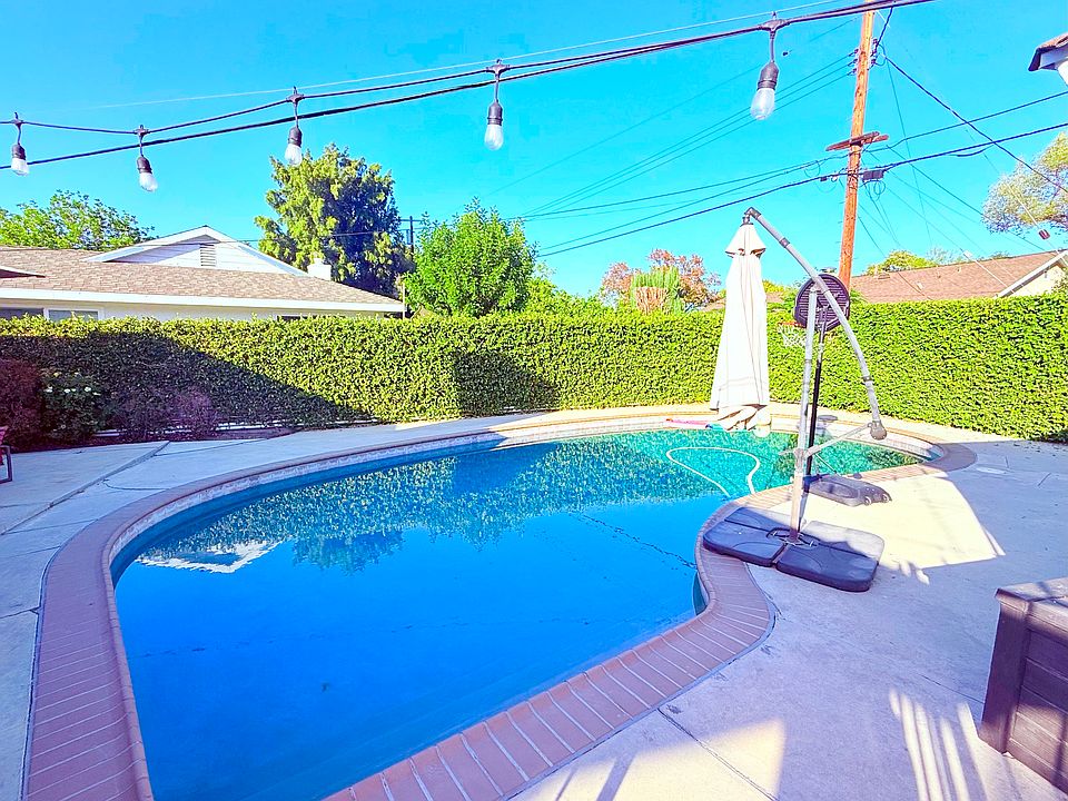 Step inside to an inviting open layout filled with natural light, ideal for both relaxed living and stylish entertaining. The spacious living area flows seamlessly into the expansive backyard, where a sparkling solar-heated pool, newly lined turf and generous patio space speckled with string lights create an outdoor retreat for gatherings or quiet relaxation. A secure gate surrounding the pool enhances both safety and peace of mind, making this home as functional as it is beautiful.