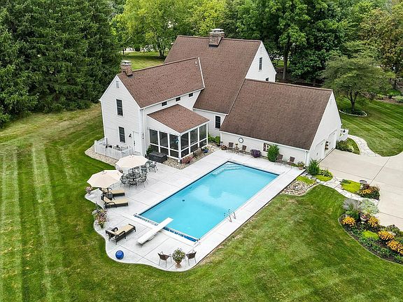 Open House Sunday August 25th 1-3pm. If you have ever wanted to live in a home with charm that feels like it is straight out of a history book, but has none of the downsides of an old home, then this is the home for you. This is a 4,464 square foot colonial home with all the charm of a historic home but all the convenience of a newer build, featuring a modern kitchen, a picturesque 1.9 acre setting, and an inground pool. The main floor is cozy with a large living room that opens to a modern-style, updated kitchen. The first of four large fireplaces is located in the space between the living room and kitchen. The kitchen is beautifully updated yet retains the character of the home, with plenty of storage and functionality. The den is beautifully paneled with a fireplace and overlooks the front garden. A mother-in-law suite off the back of the home boasts a spacious bedroom, a full bath, and a separate entrance. The master suite is situated at the top of the back staircase and is cozy with a fireplace, beautiful paneling, a large closet, and an attached updated bath with double sinks and a walk-in shower. Two more attractive bedrooms are located on this level. The third floor offers flexible space, perfect for a fifth bedroom, playroom, office—whatever you need. The basement provides additional recreation and storage space. The concrete inground pool is nicely maintained and is well-placed within the outdoor area. There is a screened porch tucked between the pool and the beautiful grounds surrounding the home. The 1.9-acre lot is both open and wooded, with amazing perennial landscaping. The home is at the end of a quite cul de sac in one of the best neighborhoods in Fort Wayne.