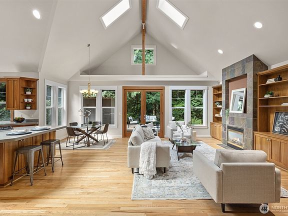 Welcome to The Retreat on Bainbridge Island! This stunning property offers a perfect blend of tranquility and modern living. Featuring 3 beds and 2.5 baths, plus a den, office area, work out space & a bonus room. The spacious open floor plan is flooded with natural light, creating a warm and inviting atmosphere. The heart of the home is the great room with double height ceilings, including the gourmet kitchen, making it perfect for entertaining. The beautifully landscaped yard is multifaceted featuring an oversized deck with a sauna (hygge ready!), gardening beds, room for play and more! Don't miss the two car garage. This home truly has it all– Gorgeous neighborhood, only 10 minutes to the ferry and even closer to Winslow. A must see!