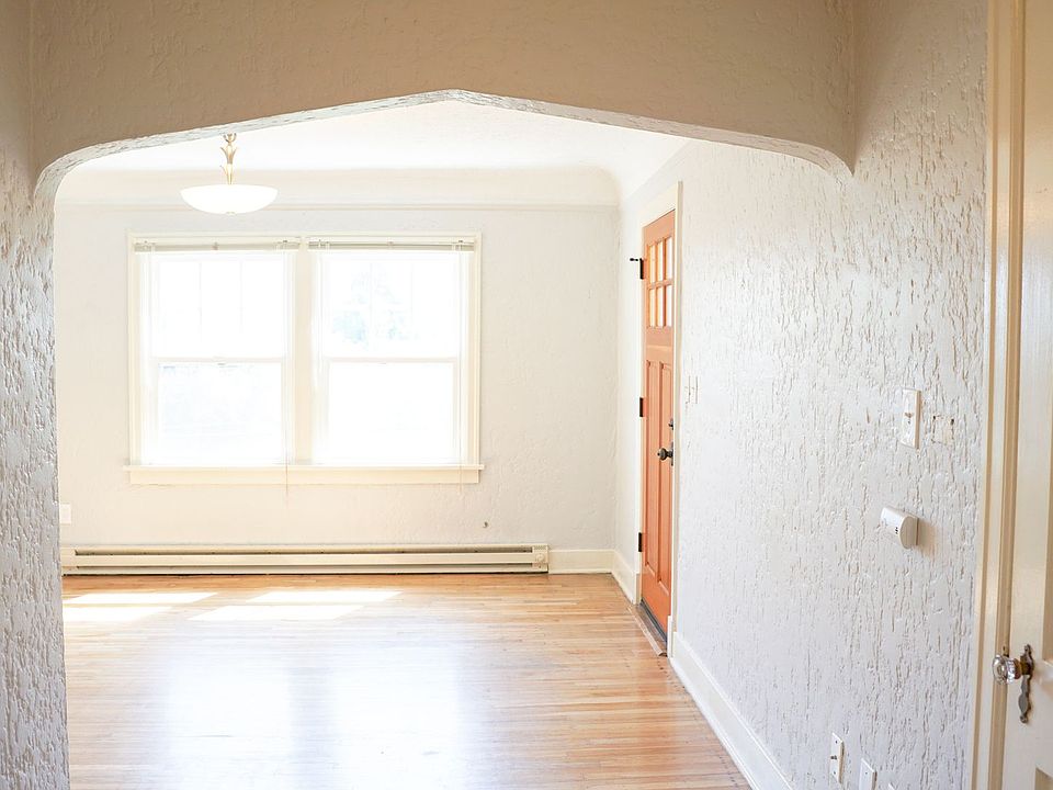 Vintage abodeDining roomSeparate dining roomArched doorwaysSpacious livingroomVintage latched-door cabinetryExcellent storage
