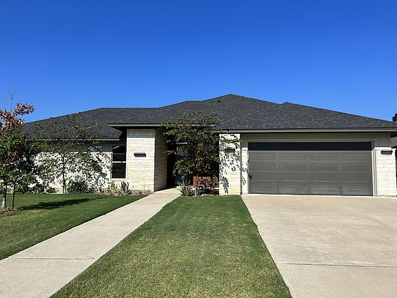 Available early Decmeber! Modern home in Legacy Ranch. Open concept with modern light fixtures and ceiling fans, SS appliances, high ceilings. Beautiful flooring, large windows for natural light, and fireplace in the living area. Large island kitchen with granite counters. Huge primary bedroom and bath, with double vanity, walk in shower, and separate tub. Walk in closet with built in storage. Oversized back covered patio and huge backyard for enjoying the coming Fall weather. Split floorplan, beautiful tile in the laundry room and a Tesla charging station in the garage. Conveniently located less than 10 minutes from Scott & White, restaurants and shopping. Small dogs welcome with additional deposit.