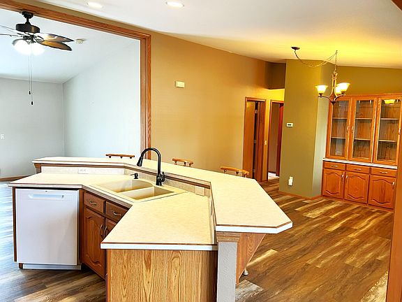 Welcome to your new home! This thoughtfully designed, single-level residence combines comfort, functionality, and style, offering an array of amenities that cater to modern living. The heart of the home is the beautifully designed kitchen, featuring a walk-in pantry for ample storage, a center island with a sink, and a two-level bar complete with a double sink and built-in dishwasher. This kitchen is both practical and perfect for entertaining. The Primary Bedroom Suite is a true retreat, boasting a spacious walk-in closet and a luxurious full bathroom. Two additional bedrooms and another full bathroom provide comfort and convenience for family or guests. The main-level laundry room adds to the ease of single-story living. Relax in the formal living room, complete with a cozy gas fireplace, large windows that let in natural light, and built-in bookcases for your favorite reads or decor. Adjacent to the living room is a small private office, ideal for working from home or managing daily tasks. The formal dining room is a standout feature, showcasing a chandelier and a built-in display case to highlight your cherished items. For more casual gatherings, the expansive family room offers space to unwind, with sliding glass doors that lead to a deck and a fenced backyard—perfect for outdoor entertaining. The front of the home features a large patio with an awning, providing a comfortable spot to relax and enjoy the outdoors. Underground sprinkling keeps the whole lawn green and soft during the summer. The attached two-car garage is finished and heated, with an extended driveway that includes two additional parking spots for guests or extra vehicles. Don't miss this opportunity to own a well-built home with thoughtful design elements, modern amenities, and spaces for everyone to enjoy. Updates include new appliances, sink hardware and new flooring in many rooms. Schedule your showing today and imagine the possibilities!