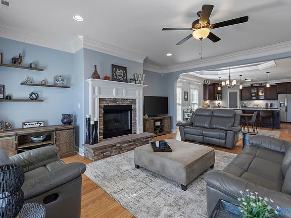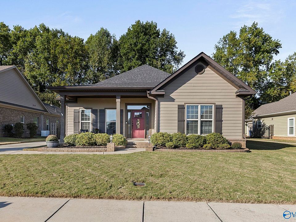 Looking for a move-in ready home just minutes from Research Park, Redstone Gate 9, and all that Huntsville & Madison have to offer? Then this charming bungalow style home is for you! Enjoy rich crown molding, trey ceilings, and hardwood floors throughout. The open kitchen with granite island overlooks the living and dining areas for seamless entertaining. The isolated primary suite offers a peaceful retreat with whirpool tub & shower. Two additional bedrooms nearby share the second full bath. Outside, enjoy a privacy-fenced backyard, covered patio, and safety feature of an electronic driveway gate. Walk-up attic over the garage provides abundant storage space! New shutters added in 2025.
