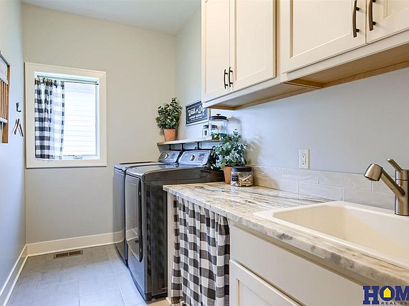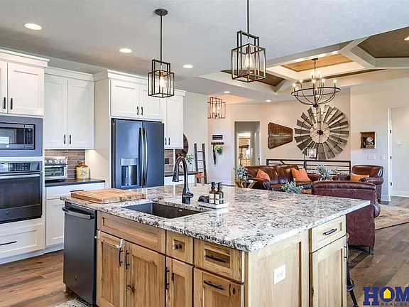 Fall in love with this warm and welcoming former parade home featuring modern style with natural elements. Stone, stucco & cement board exterior with 2 x 6 construction. Smart features include remote options for sprinklers, video with one portable camera and the doorbell, plus alarm system. Stunning cedar front porch. Hickory custom ceiling, mantle, window seats, kitchen island, range hood & dining wall. Beautiful stone fireplace in great room. Large kitchen island with custom cabinetry, large 13 x 7 pantry with granite counter & extra shelving. 16 x 13 covered deck with access to dining & master bedroom. Mudroom off the garage with extra cabinetry. 3 bedrooms upstairs & 2 bedrooms in basement with 6th non-conforming bedroom (currently used as work-out room). Walk-out basement with large covered patio, gorgeous basement bar with cabinets to the ceiling, large island, rec room & cozy hearth room area. Jack & Jill bathroom. Large storage room. Smart features and thoughtful design!